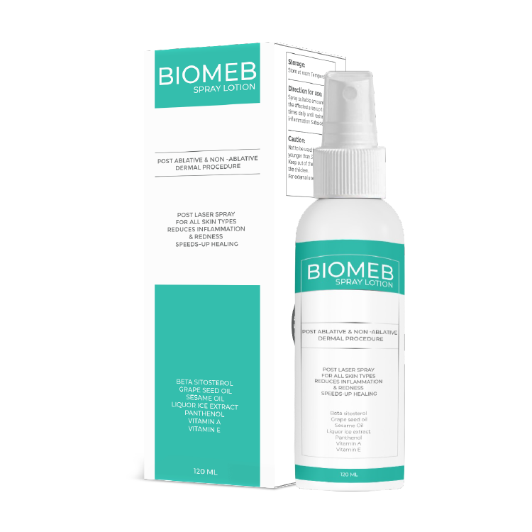 Biomeb spray is ideal for post laser procedures for immediate relief of irritation & redness.